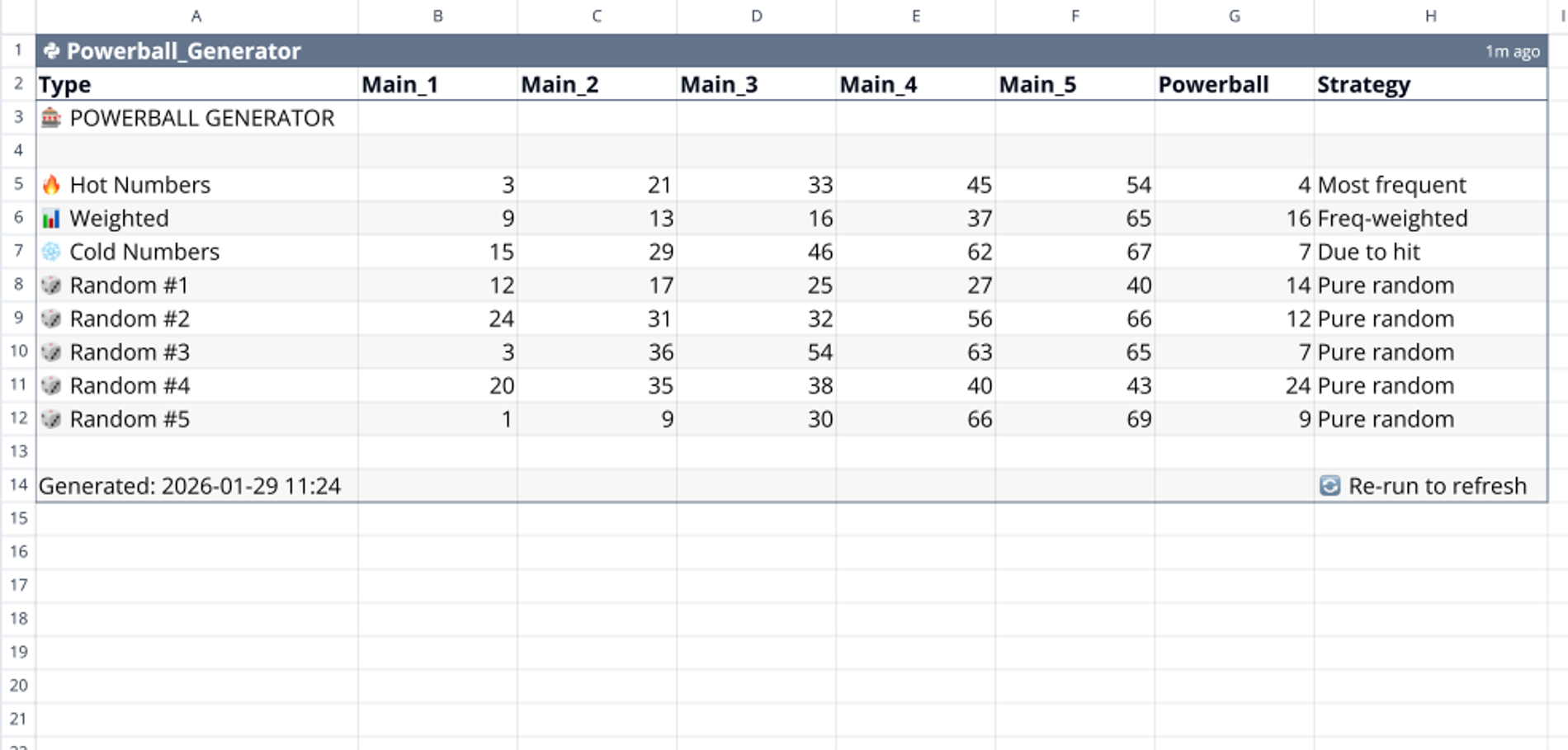 - Process nearly 1,900 historical Powerball draws with native Python.
