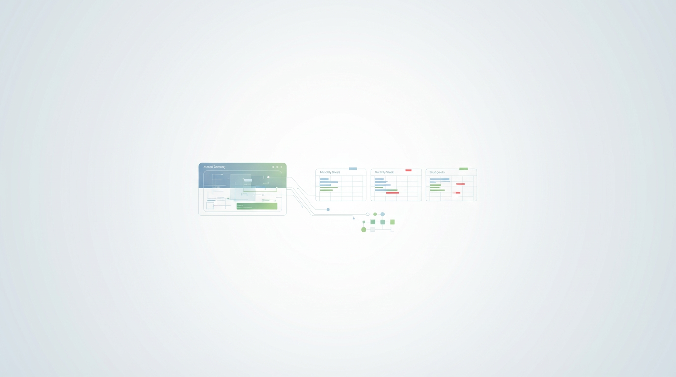 The structural flaw of traditional spreadsheets is that they rely on tabs to organize time. In a standard setup, you might have one tab for January, another for February, and so on. To compare March’s spending against January’s, you have to click back and forth, losing context with every switch. This lack of visibility makes it difficult to spot trends.